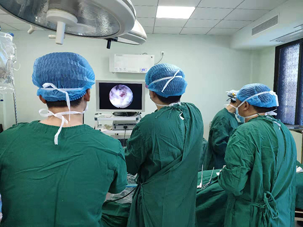 10月底,岳陽愛康醫(yī)院骨科主任劉鴻程為該患者進(jìn)行經(jīng)皮椎間孔鏡髓核摘除術(shù)。在局麻下利用穿刺針,經(jīng)病變椎體后外側(cè)穿刺至椎間孔處,在擴(kuò)大椎間孔及神經(jīng)根管后,建立了手術(shù)微創(chuàng)通道,并通過該單一通道對其突出的腰椎間盤實(shí)施了切除?! ?/span>