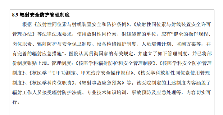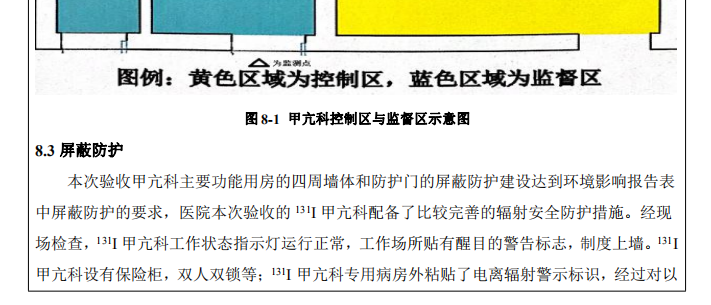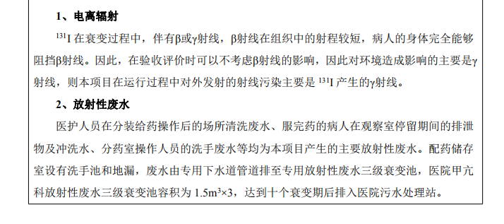 本次驗(yàn)收為?個?級?密封放射性?作場所,利? 131I 開展甲亢治療,與環(huán)評報(bào)告和批復(fù)?致。