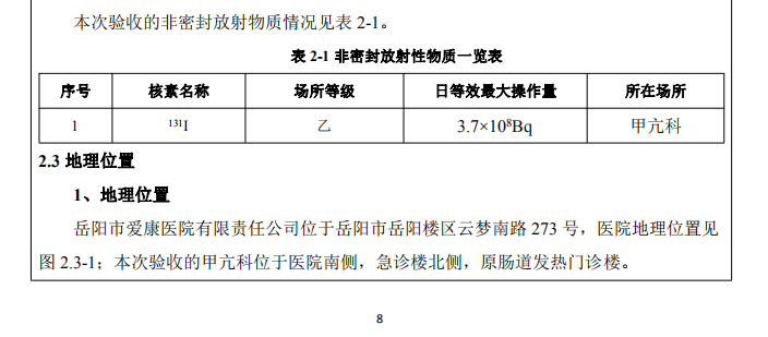 建設(shè)地點(diǎn)位于岳陽市岳陽樓區(qū)云夢南路 273 號岳陽市愛康醫(yī)院甲亢科,主要