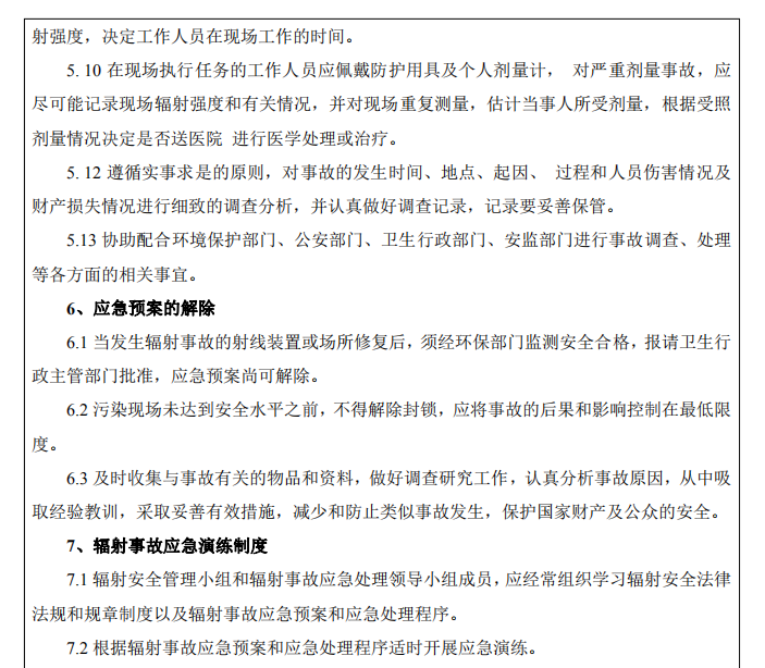 (4)進(jìn)?步完善輻射事故應(yīng)急處理預(yù)案和輻射防護(hù)管理制度。加強(qiáng)放射?作場所的組織管理?作,切實(shí)執(zhí)?相關(guān)管理制度及操作規(guī)程,保護(hù)放射?作?員。